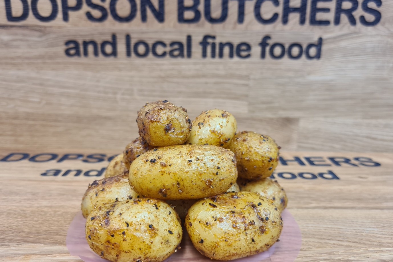 Prepped new potatoes with a garlic & herb glaze ready to be crisped.