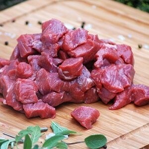Lean diced leg of lamb. We recommend 150g-200g per person.